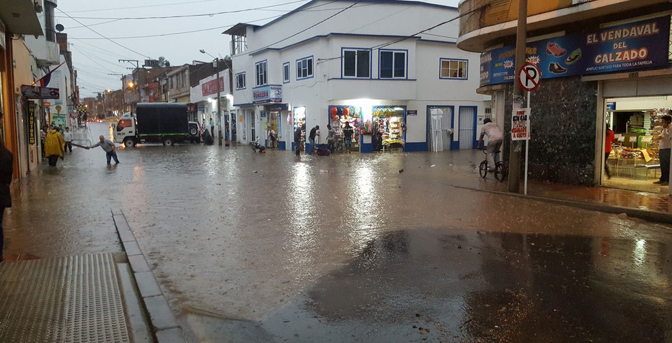 Vías totalmente inundadas, viviendas, colegios, locales comerciales bajo el agua, fue el resultado de un aguacero registrado durante las horas de la tarde en la ciudad de Chiquinquirá.